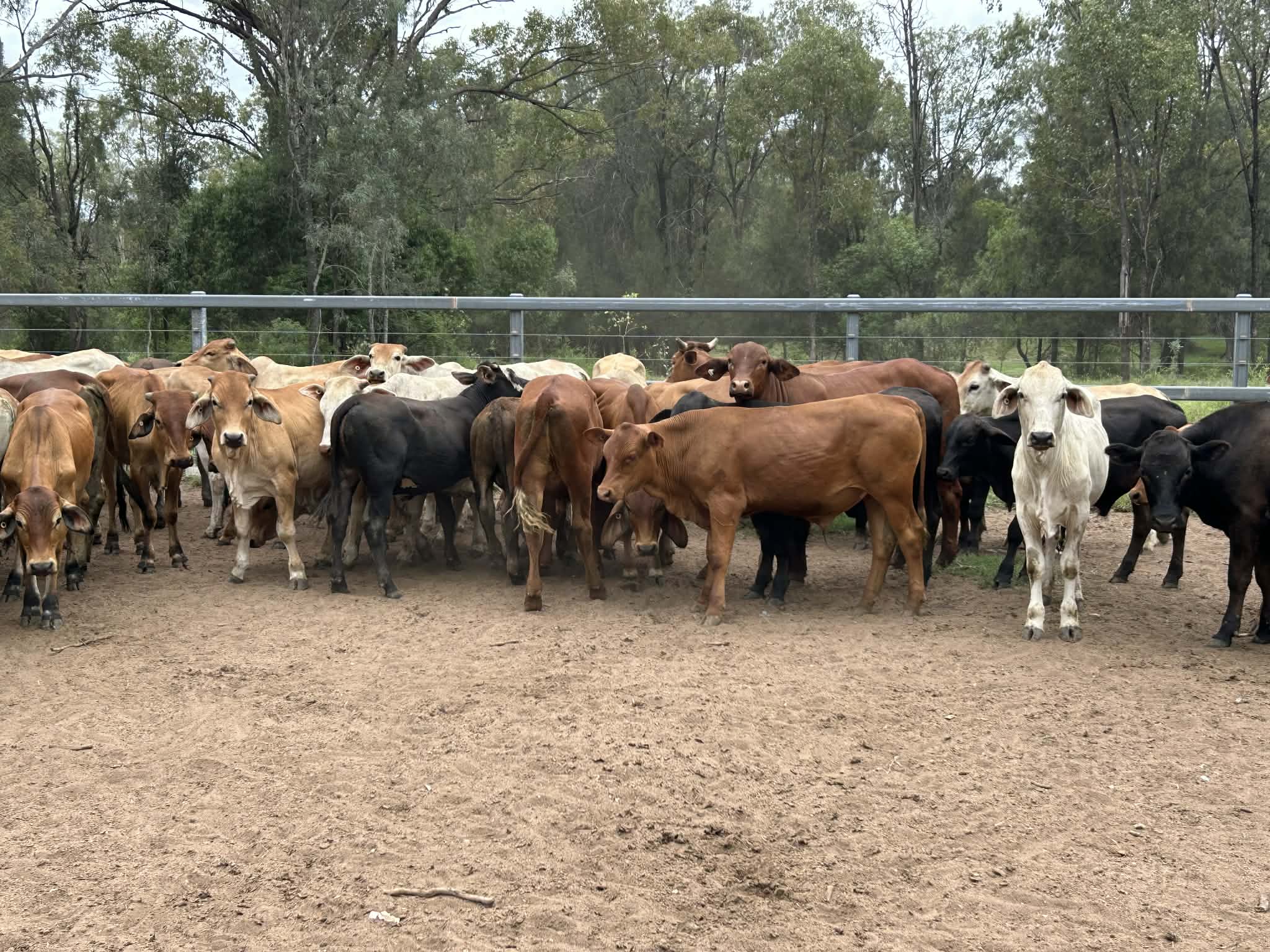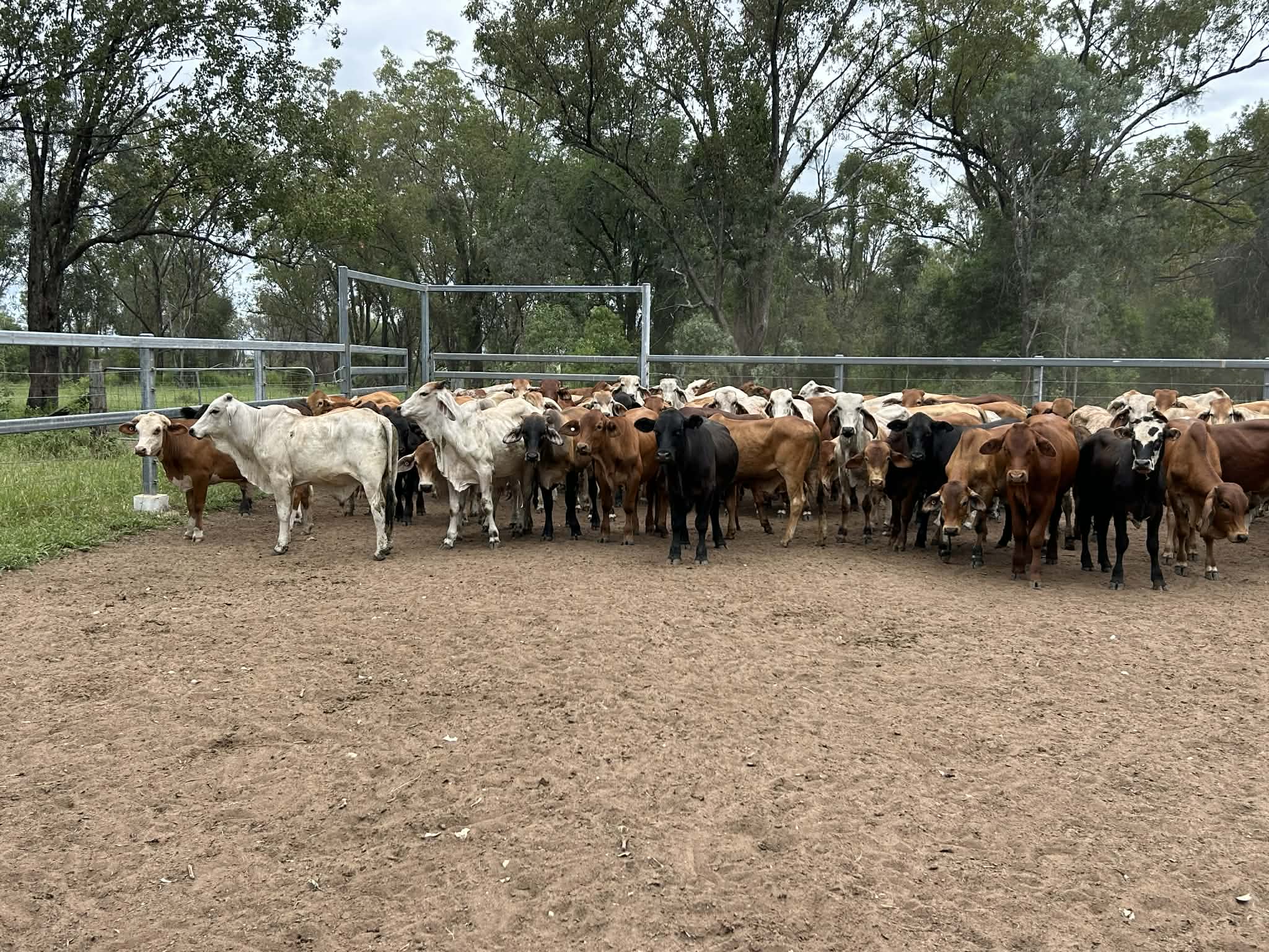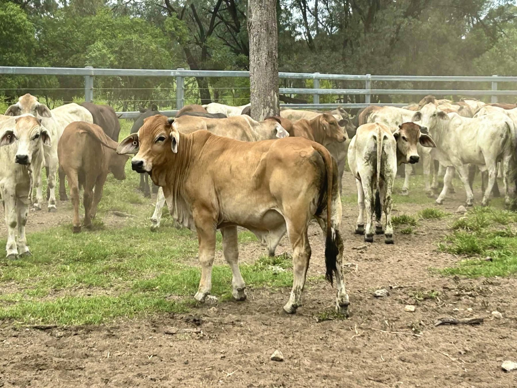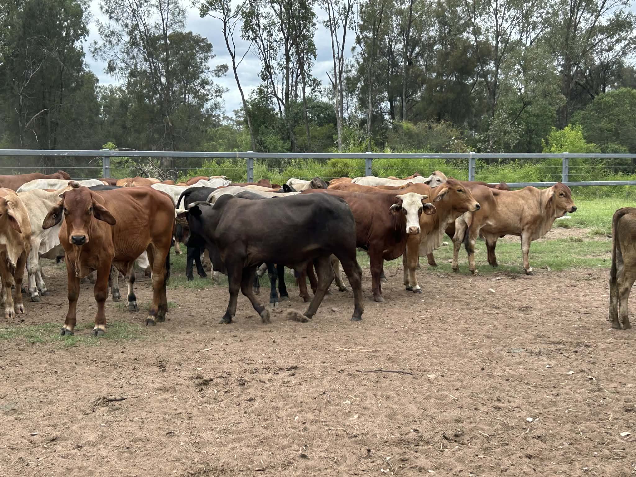 Approximately 150 Brahman and crossbred steers are offered for sale, weighing 160–300kg. These steers are of fair quality with good frame, making them suitable for backgrounding or grow-out programs.